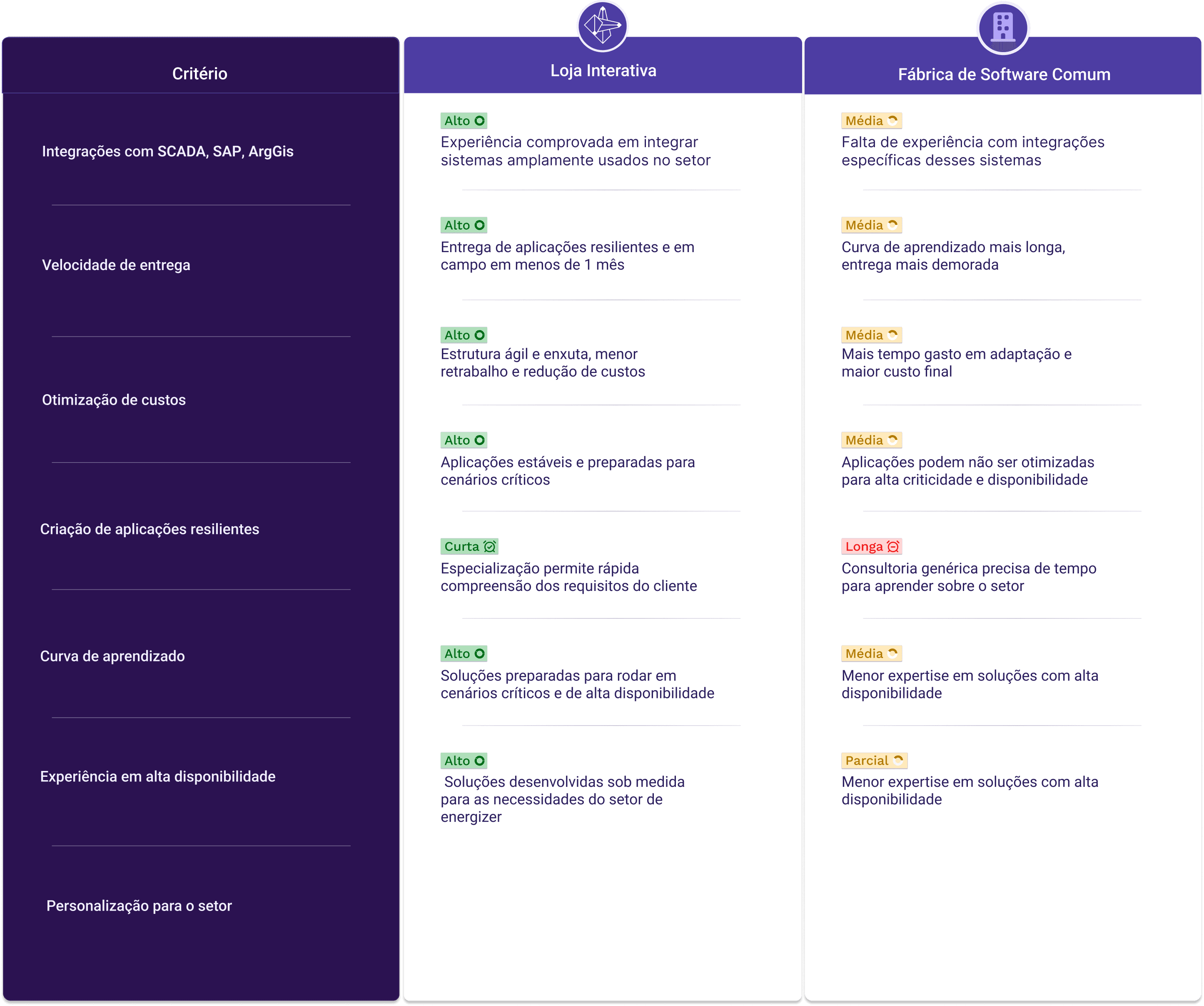 Nossa especialização no setor de energia evita erros caros e reduz a curva de aprendizado, garantindo um desenvolvimento mais rápido e eficaz.