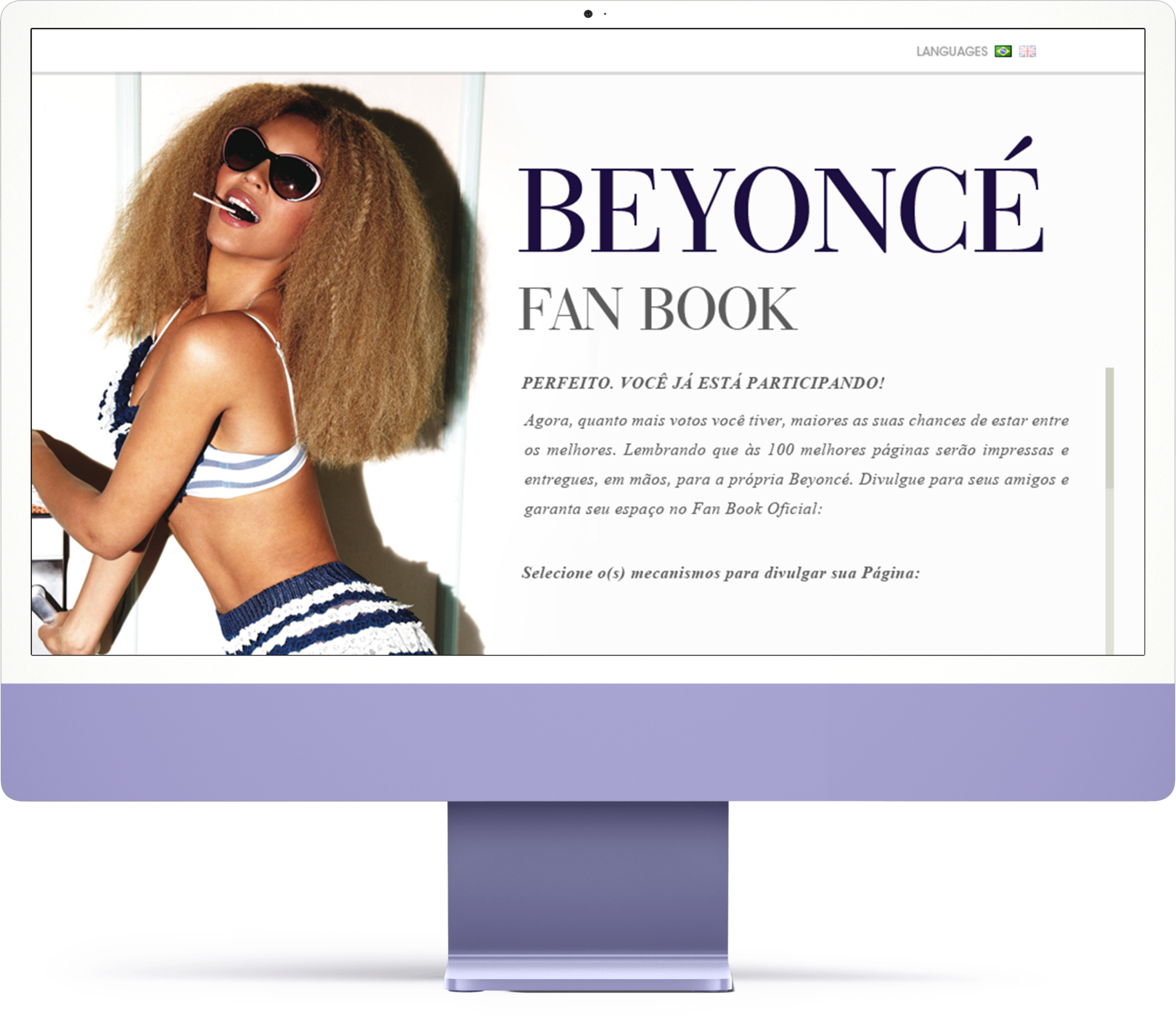 A Loja Interativa desenvolveu uma aplicação de edição de imagens online que permitia aos fãs de Beyoncé criar páginas personalizadas usando fotos, stickers e textos. Essas criações eram integradas a um sistema de votação nas redes sociais, onde as mais votadas seriam incluídas em um fanbook exclusivo, entregue à artista. A plataforma, acessível diretamente pelo navegador, aumentou o potencial viral da ação, sem a necessidade de instalação de plugins, e permitiu uma experiência de personalização completa para os fãs.