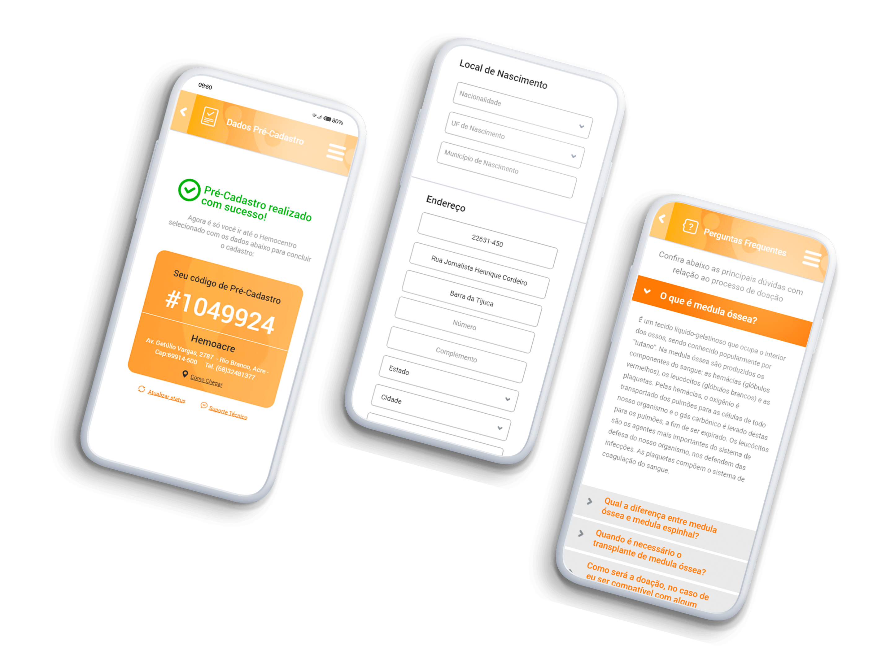 O aplicativo Redome, desenvolvido para o INCA, revolucionou o processo de doação de medula óssea ao permitir que todo o fluxo de cadastro e gestão dos doadores seja realizado de forma 100% online. Com ele, novos doadores podem iniciar o processo de registro digitalmente, acompanhar o andamento junto ao hemocentro, atualizar seus dados cadastrais, emitir carteirinhas e declarações de doação. A plataforma garante a segurança dos dados sensíveis e traz uma experiência inovadora e eficiente, posicionando o Redome e o INCA como referências globais em tecnologia para doação de medula óssea.