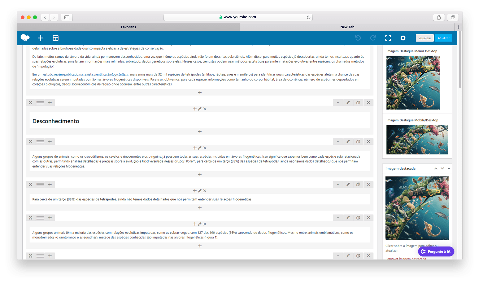 Com o site já pronto, começa a etapa de cadastro e diagramação de todo o conteúdo. Entram em ação profissionais especializados em encontrar a melhor forma de expor o conteúdo de cada seção do site.